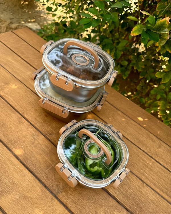 🪩کاسه استیل 3 تکه درب دار قفلی🔒