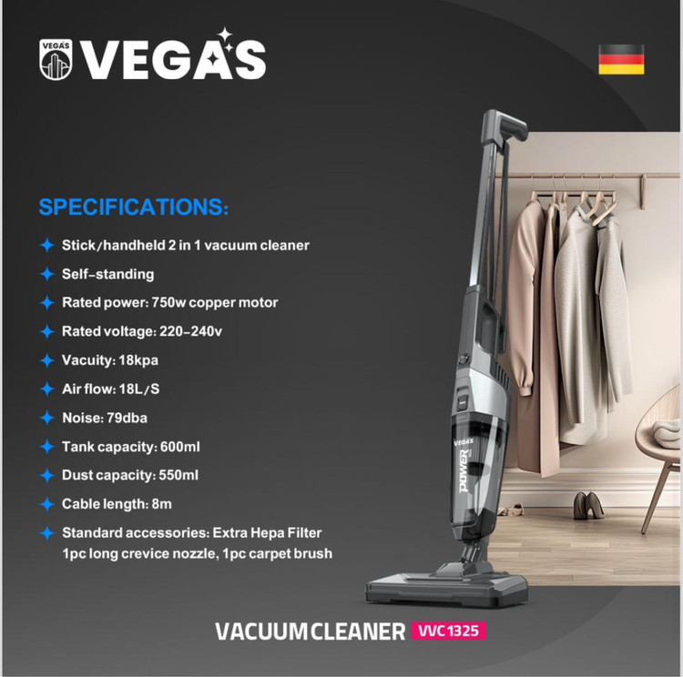 اگر به دنبال یک جاروبرقی پرتابل جمعوجور، قدرتمند و چندمنظوره هستید، مدل VVC1325 از برند وگاس با طراحی هوشمندانه و لوازم جانبی کامل، انتخابی اقتصادی و کاربردی برای خانهی شما خواهد بود.