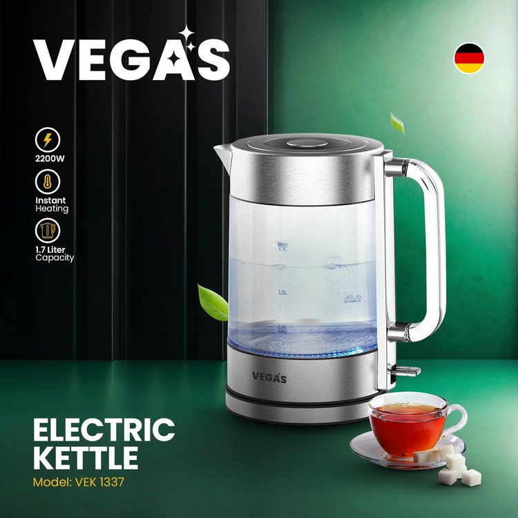 اگر به دنبال یک کتری برقی مدرن، سریع، ایمن و زیبا هستید، مدل VEK1337 از برند وگاس با توان بالا و طراحی کاربرپسند، انتخابی ایدهآل برای آشپزخانهی شما خواهد بود.