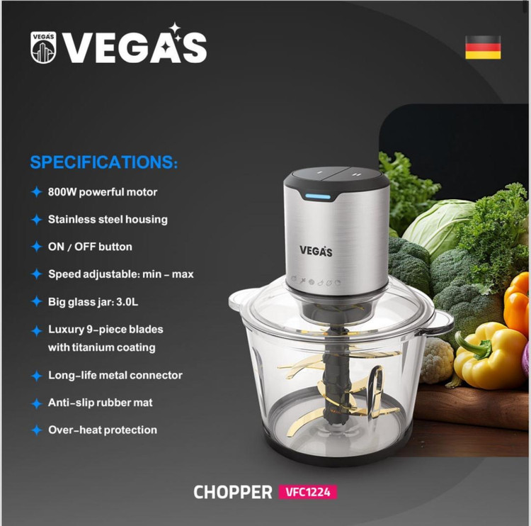 اگر به دنبال یک خردکن حرفهای با قدرت بالا، طراحی هوشمند و قطعات باکیفیت هستید، مدل VFC1224 از برند وگاس انتخابی عالی برای آشپزخانههای خانگی یا نیمهحرفهای است.