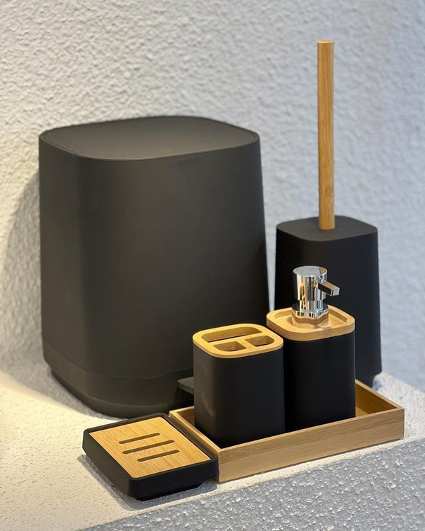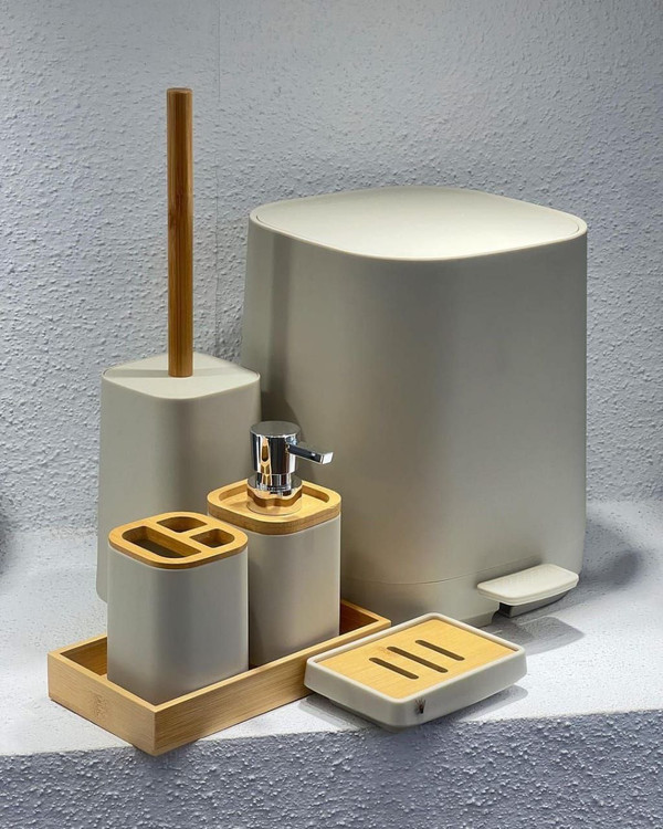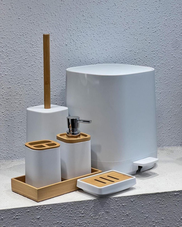 ست شامل: سطل پدالی / فرچه / جامسواکی / جامایعی / جاصابونی / استند بامبو