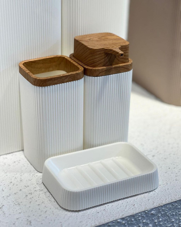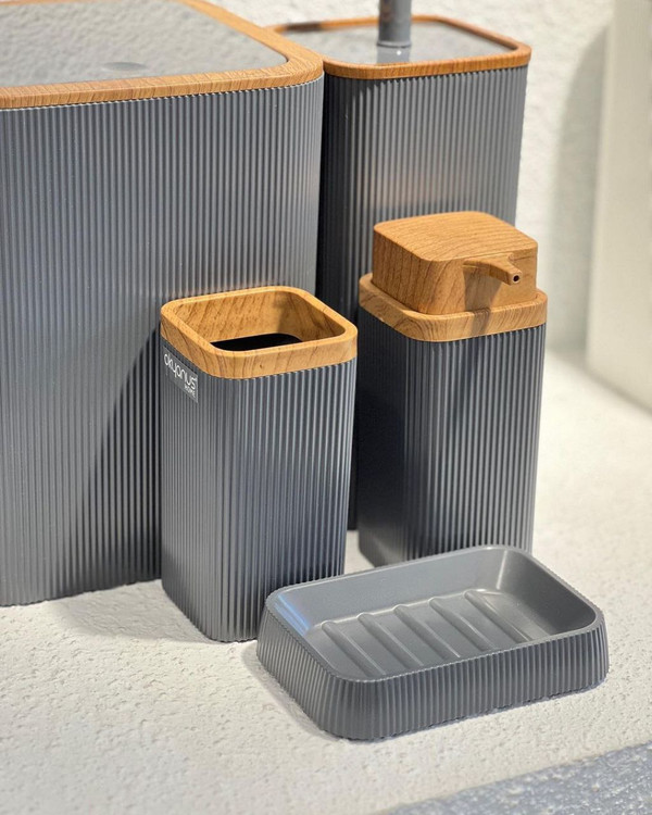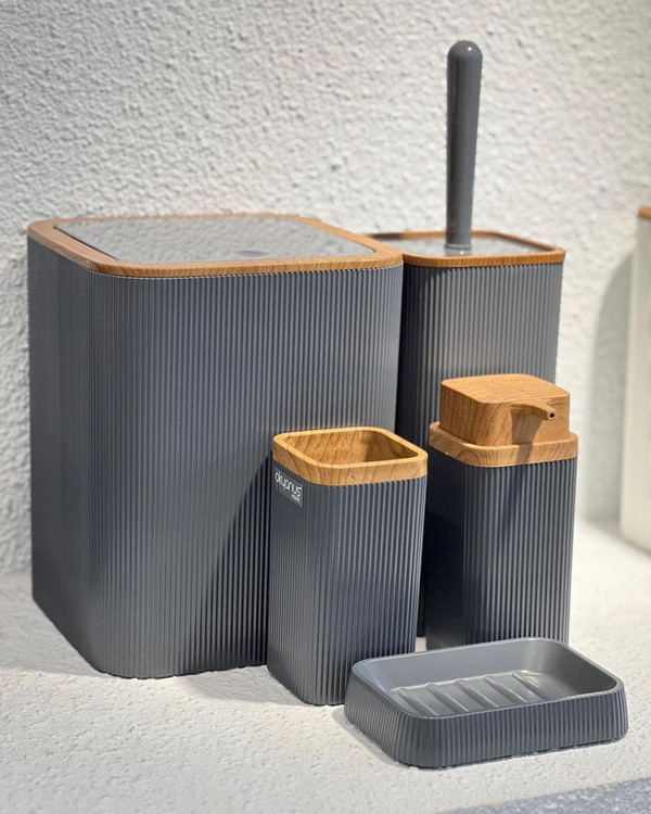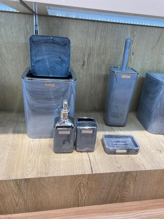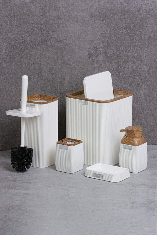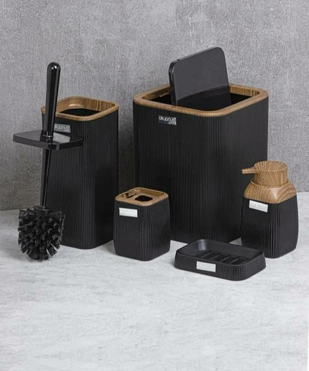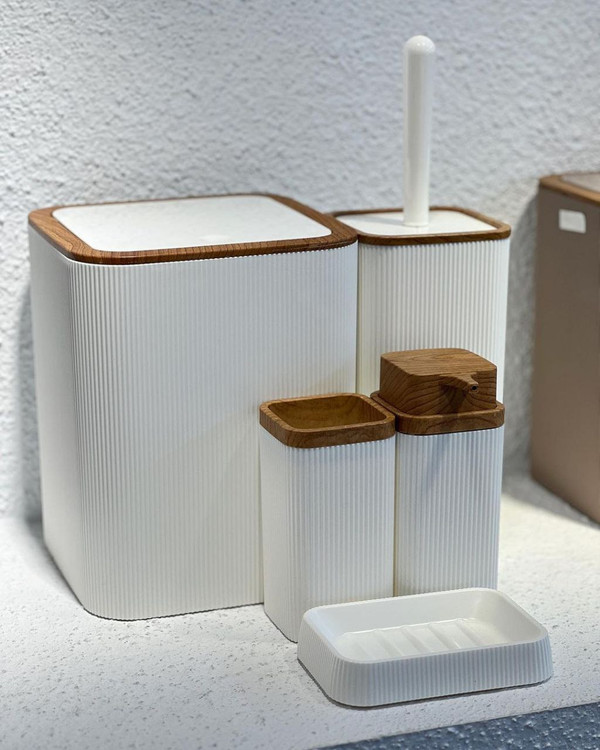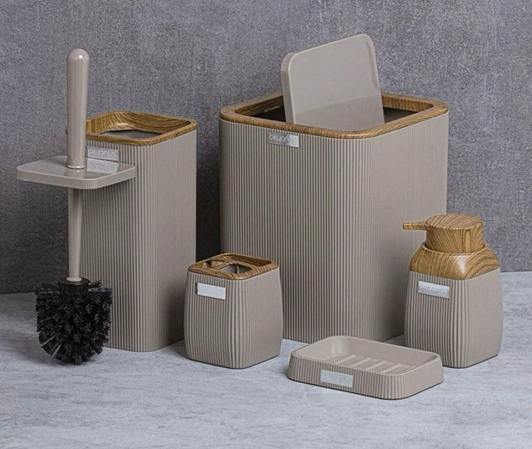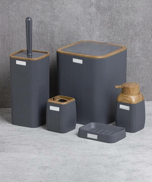 ست شامل: سطل زباله / جا فرچه ای دسته دار / جامسواکی / جامایع / جا صابونی