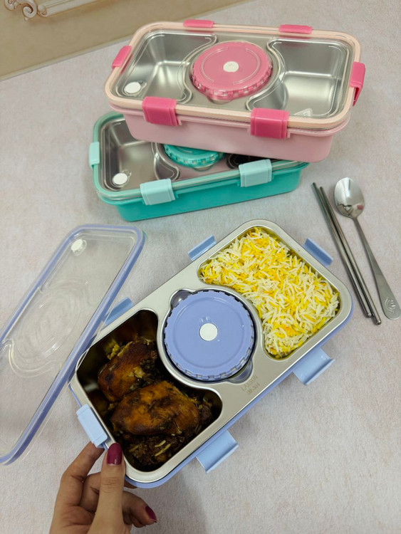 لانچ باکس مستطیل ۶ قفله داخل استیل 🥪