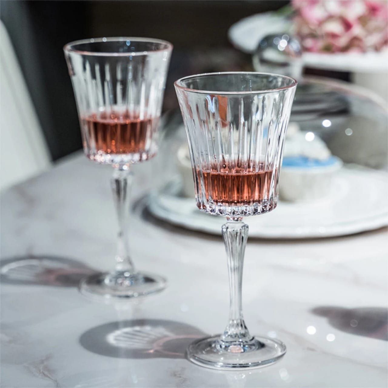 گیلاس خوری تراش دار ۶ عددی DELI GLASS جنس کریستال شفاف و سبک کیفیت عالی کاملا براق قابل استفاده در فر و ماشین ظرفشویی ارتفاع 21.5 و قطر دهانه 8.5 سانتی متر