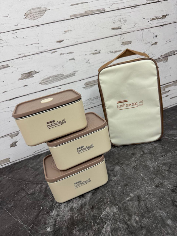 ظرف غذا (لانچ باکس) ۳ تیکه مربعی با کیف عایق
