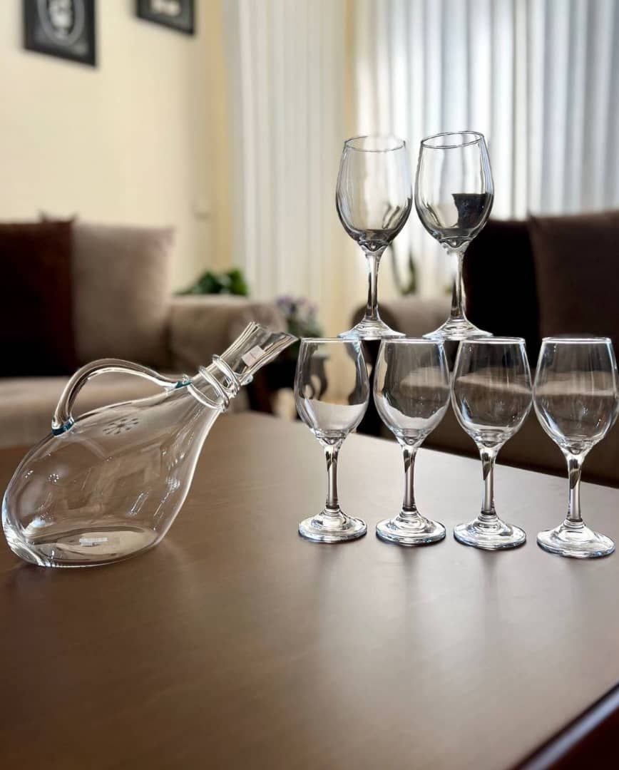 ست تنگ و گیلاس 7 پارچه برند Deli Galss جنس کریستال شفاف و سبک کیفیت عالی و کاملا براق حجم تنگ 1/5 لیتری