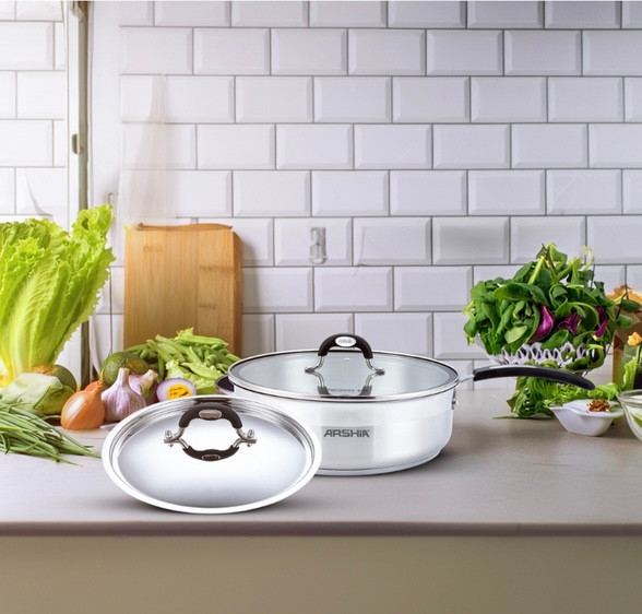 ماهیتابه تک دسته 28 سانت استیل عرشیا ARSHIA مدل SS478-3085