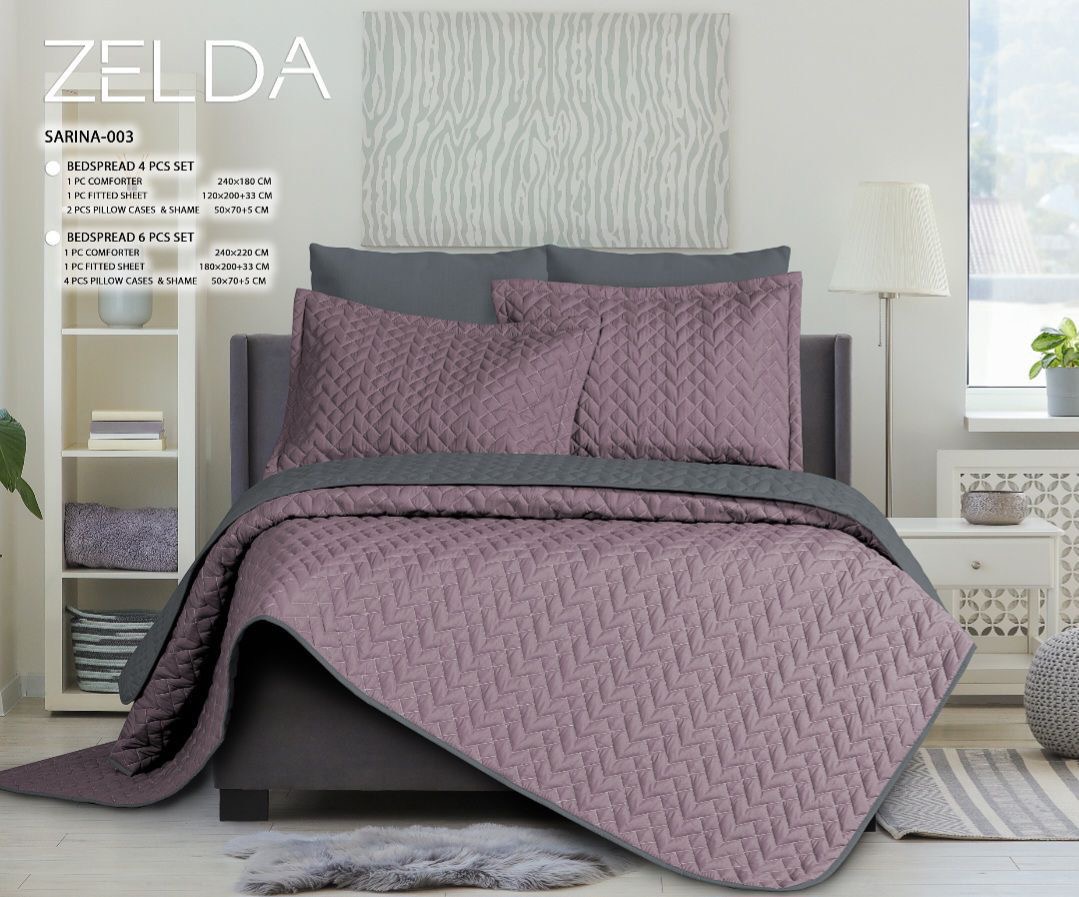 ۶ تیکه / ۴ عدد رو بالشی / ۱ عدد لحاف / ۱ عدد ملحفه تمام کش