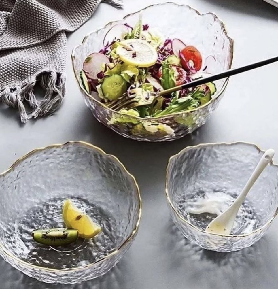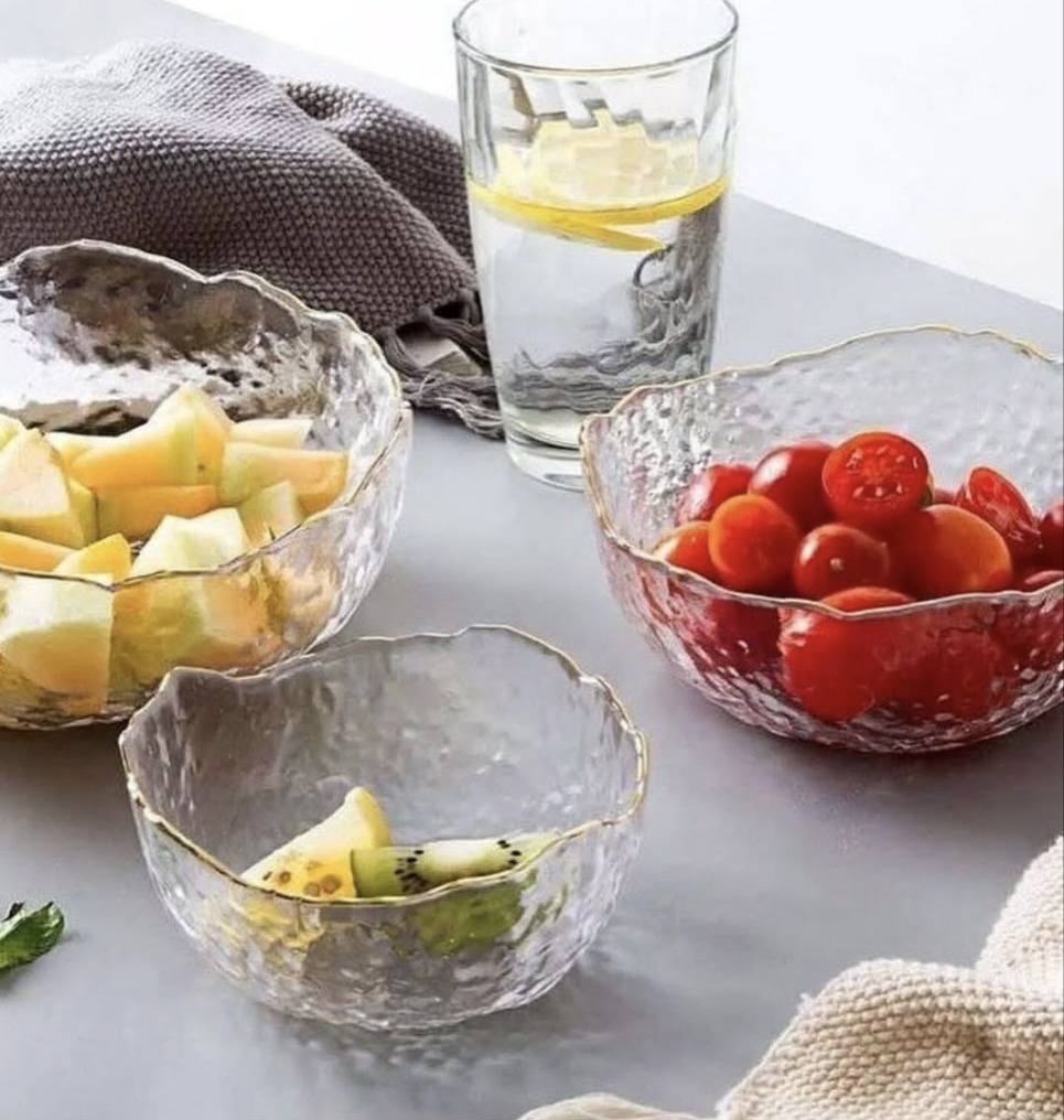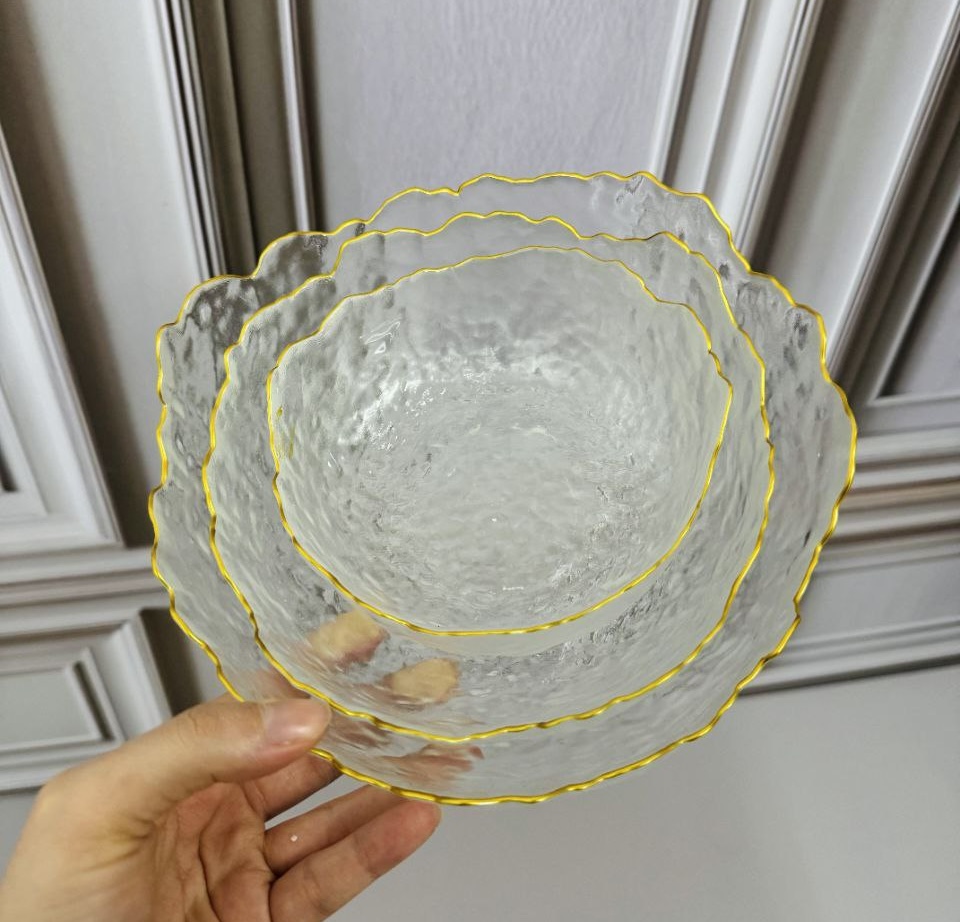 کاسه و پیاله دفرمه 3 تایی لبه طلایی