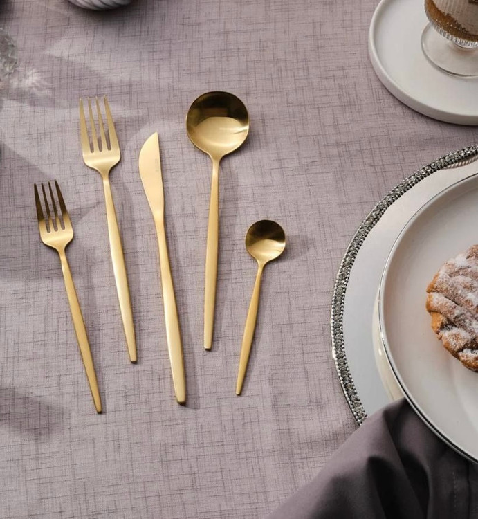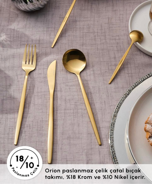 ست شامل: ۱۲ عدد قاشق غذاخوری / ۱۲ عدد چنگال غذاخوری / ۱۲ عدد کارد غذاخوری / ۱۲ عدد چنگال دسر /۱۲ عدد قاشق چای