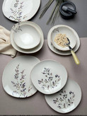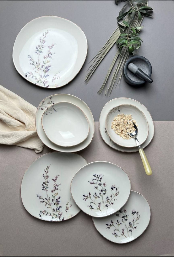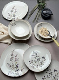 ست شامل : ۴ عدد بشقاب سرو ۲۷ سانتیمتری ۴ عدد بشقاب گود ۲۲ سانتیمتری (عمق ۳ سانتیمتر) ۴ عدد کاسه ۱۶ سانتیمتری