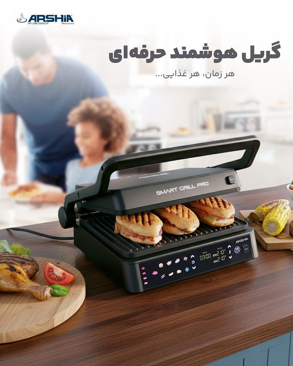 گریل عرشیا مدل SG278-3418 دارای طراحی چندمنظوره است که میتواند از گریل تکی تا گریل باز با صفحات نچسب قابل جدا شدن را پشتیبانی کند.