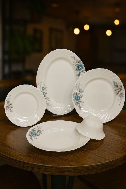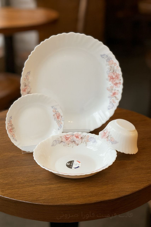ست شامل: ۶ پلوخوری / ۶ خورشتی / ۶ پیشدستی / ۶ پیاله / ۱ دیس بزرگ