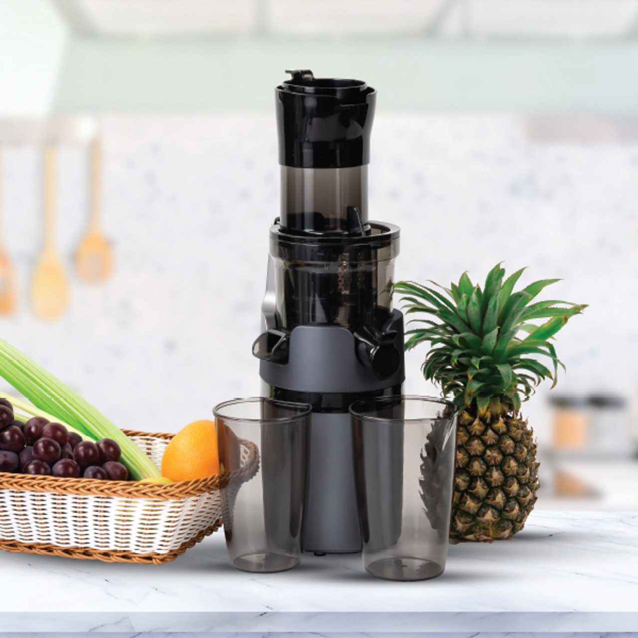بدنه خاکستری براق با جزئیات مشکی برجسته، ظاهری مدرن و شیک به این عصاره گیر می بخشد.