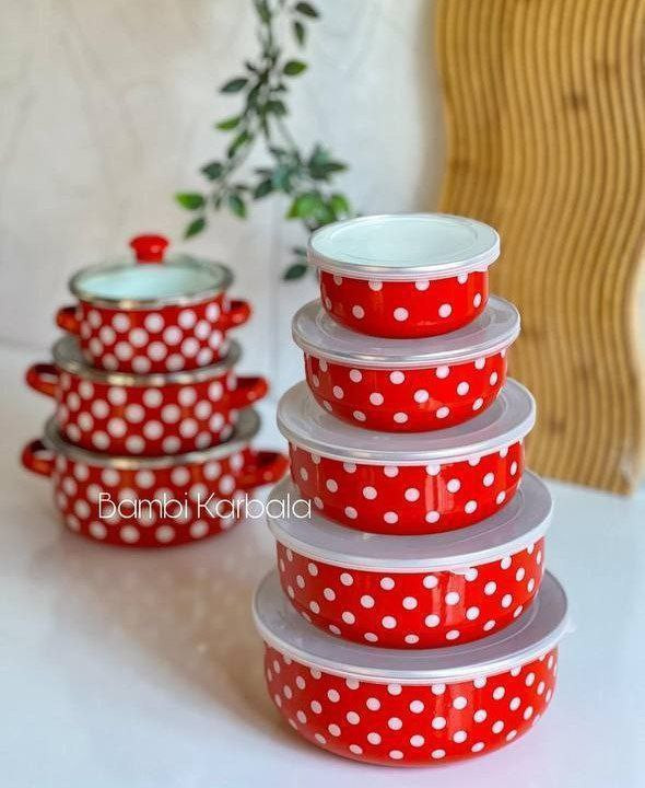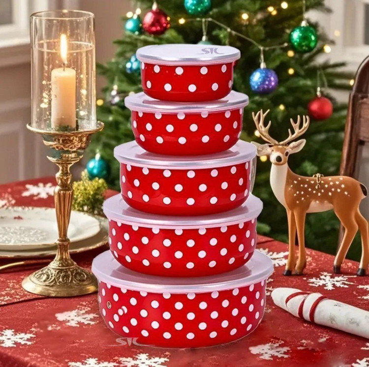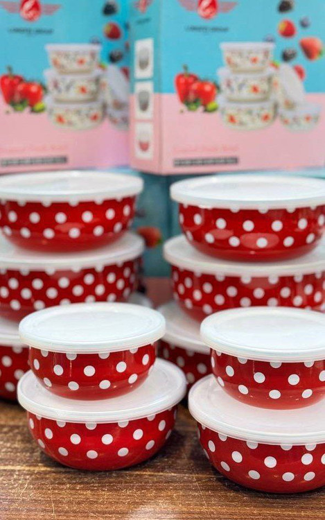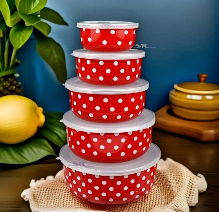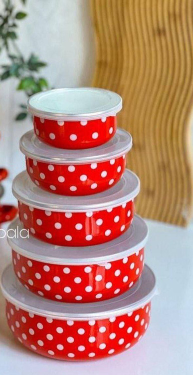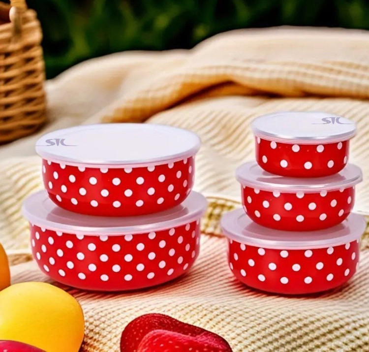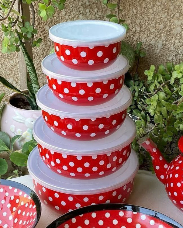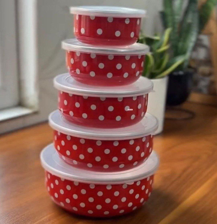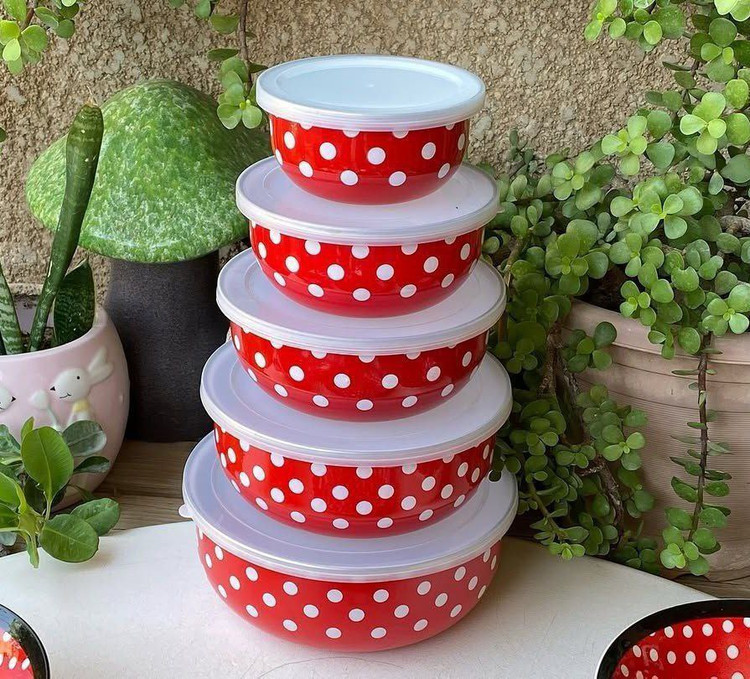 ست ۵ تکه ظروف نگهدارنده لعابی خالدار