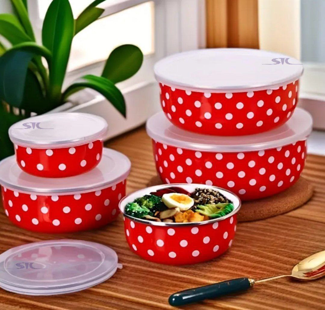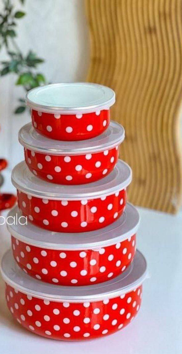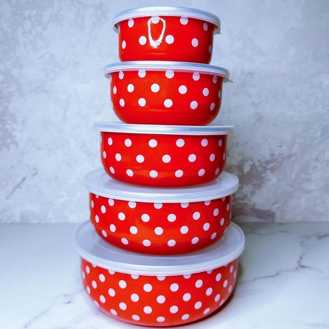 ست ۵ تکه ظروف نگهدارنده لعابی خالدار