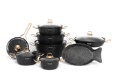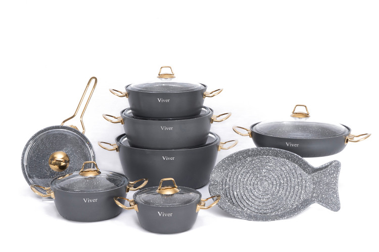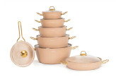 جنس دستگیره این سرویس فلز آبکاری طلایی با رنگ ثابت می باشد درنتیجه هرگز دستگیرهها آسیب نمیبینند. استفاده از دستگیره فلزی طلایی علاوهبر محافظت آن دربرابر حرارت مستقیم موجب ظهور طرحی زیبا و منحصربهفرد شدهاست. مواد تشکیلدهنده لایه درونی با تکنولوژی نانو گرانیت با فرمول گیاهی ساختهشده و ترکیبات آن غیر قابل ترکیب با مواد غذایی بوده و این محصول را جهت پختوپز سالمتر ارائه میکند