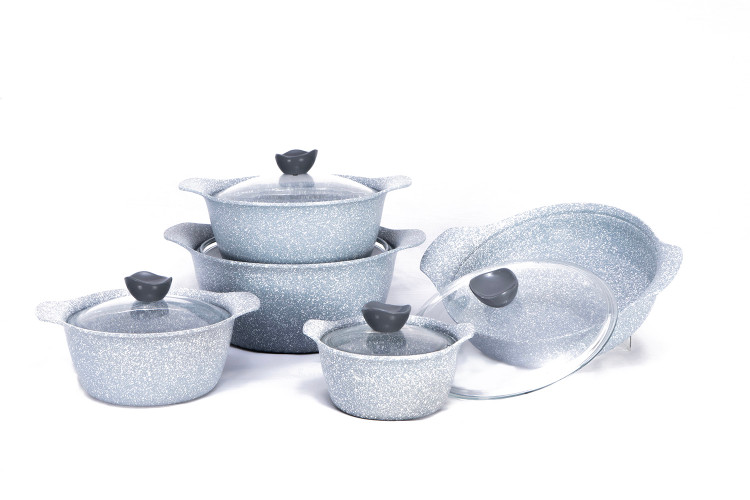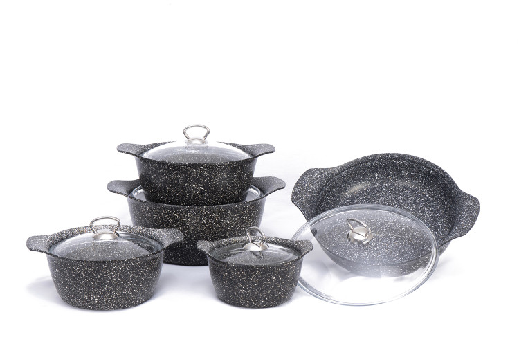 جنس دستگیره این سرویس با جنس بهکاررفته در بدنه (چدن) همسان بوده ودرنتیجه هرگز دستگیرهها آسیب نمیبینند. ادغام جنس دستگیره با بدنه علاوهبر محافظت آن دربرابر حرارت مستقیم موجب ظهور طرحی زیبا و منحصربهفرد شدهاست. مواد تشکیلدهنده لایه درونی با تکنولوژی نانو گرانیت با فرمول گیاهی ساختهشده و ترکیبات آن غیر قابل ترکیب با مواد غذایی بوده و این محصول را جهت پختوپز سالمتر ارائه میکند.