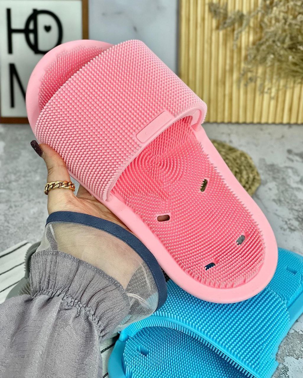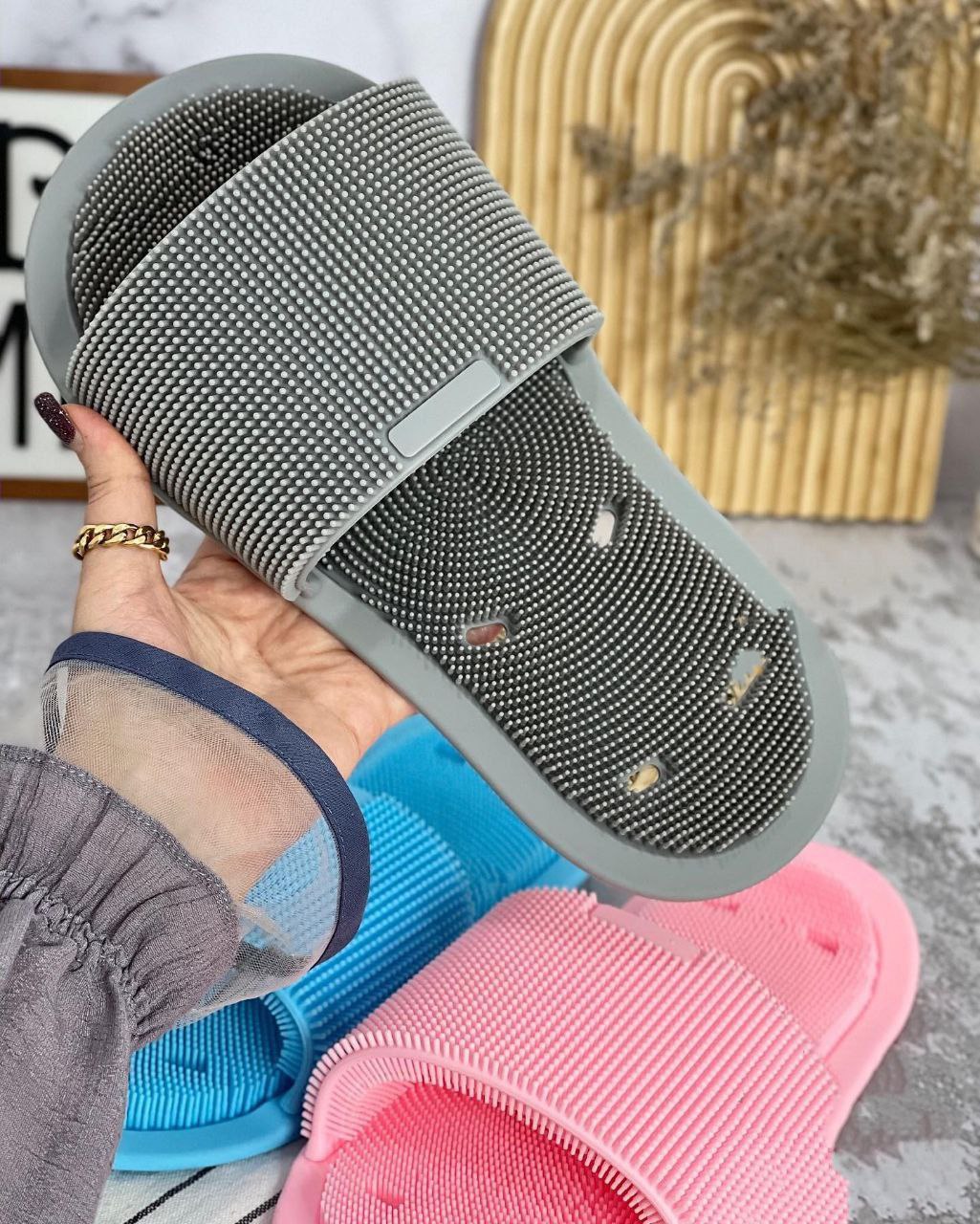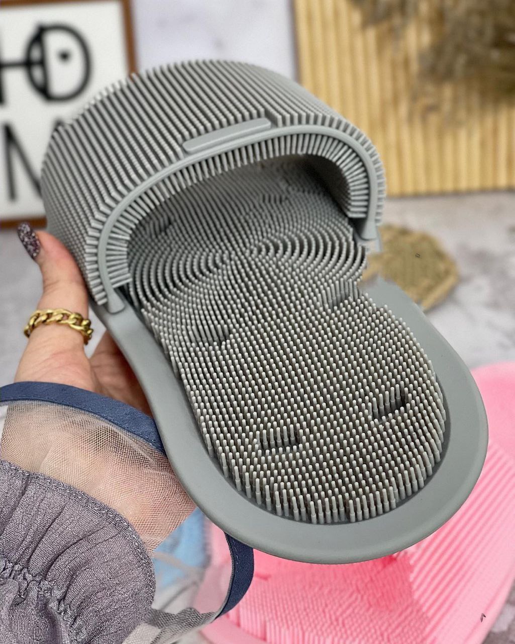 این دمپایی حمام هم کف پا وهم روی پا روبا فرچه های بی نظیر سیلیکونی که داره کاملا تمیزمیکنه😍
