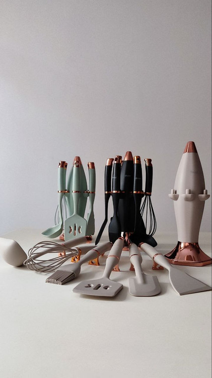 ست شامل: عدد لیسک / ۱ عدد کفگیر / ۱ عدد ملاقه / ۱ عدد فرچه / ۱ عدد همزن دستی