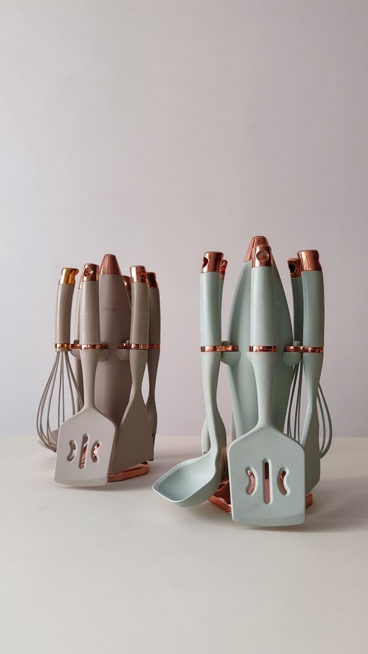 ست شامل: عدد لیسک / ۱ عدد کفگیر / ۱ عدد ملاقه / ۱ عدد فرچه / ۱ عدد همزن دستی