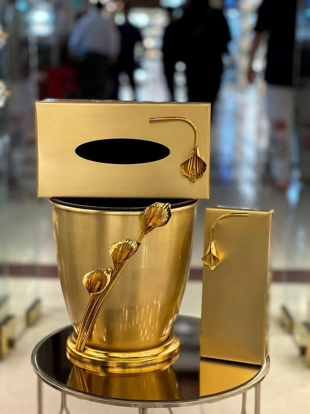 سطل و جا دستمال آلومینیوم طرح گل لیلیوم