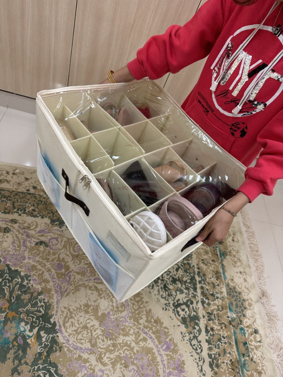 از این وسیله به عنوان بقچه لباس و کلا هر وسیله که توی خونه تکونی جا براش پیدا نمی کنید می تونین استفاده کنید✌️