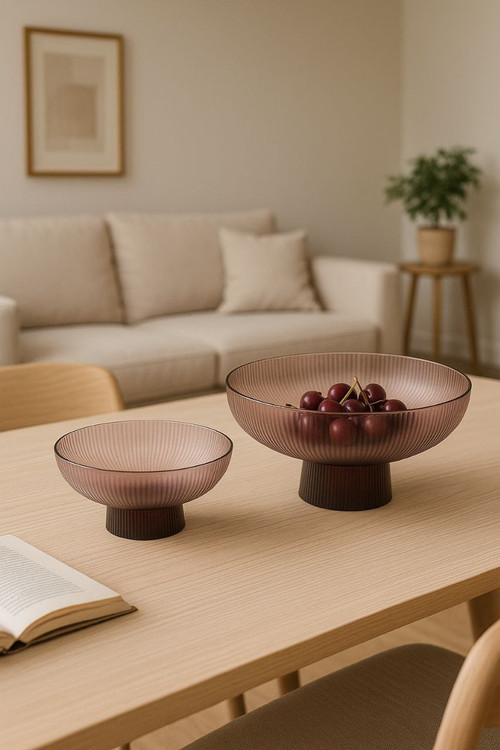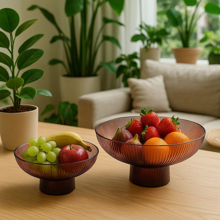 میوهخوریهای وارداتی بلور رنگ ثابت با طراحی خطی و مدرن، زیبایی خاصی به میز پذیراییتون میبخشن 🍇🍎