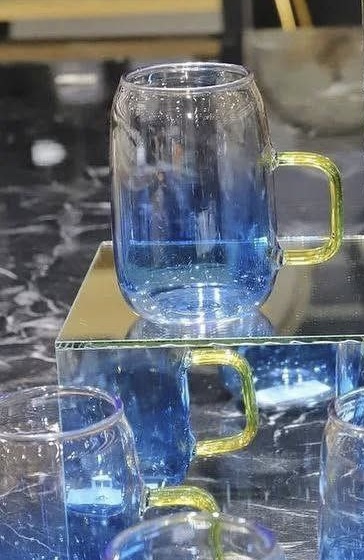 لیوان جفتی رنگی محصول درجه یک وارداتی جنس پیرکس شعله مستقیم کیفیت عالی و رنگ ثابت ظرفیت لیوان 300 سی سی