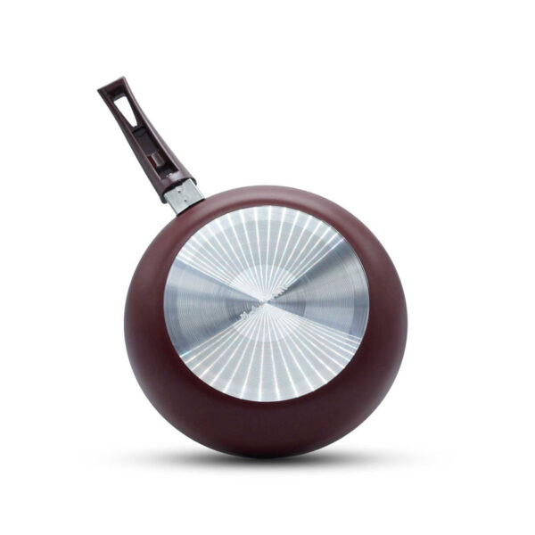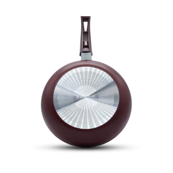 بیرون ظروف از پوشش تفلون ضدخش تولید شده که همین امر باعث میشود بیرون ظروف دچار خط و خش سوختی و رنگ پذیری غذا نشود و ظاهر ظروف شما شکل بدی پیدا نکند.