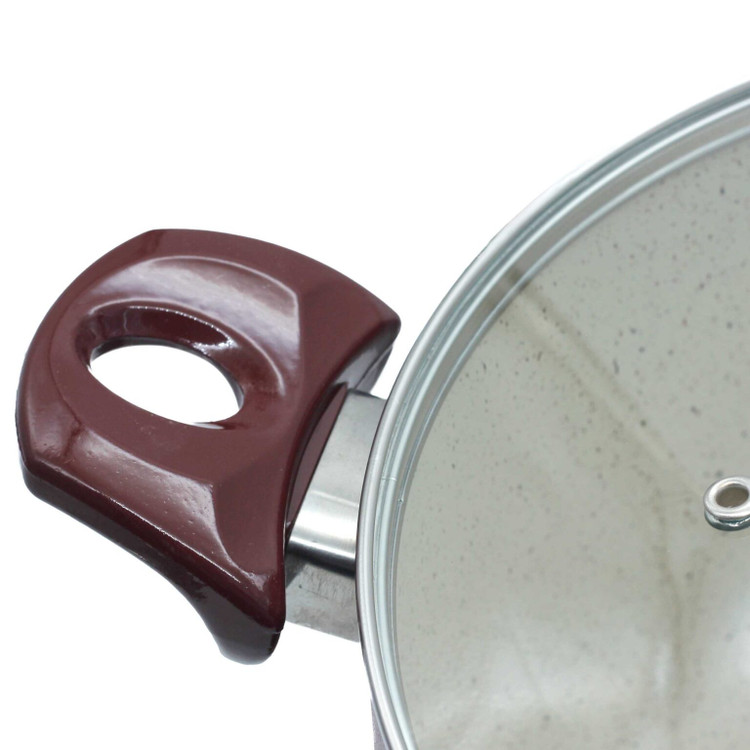 قابلمه ماهان دارای درب شیشه ای نشکن با زهه استیل می باشد. و بیرون ظروف از پوشش تفلون ضدخش تولید شده که همین امر باعث میشود بیرون ظروف دچار خط و خش سوختی و رنگ پذیری غذا نشود و ظاهر ظروف شما شکل بدی پیدا نکند.