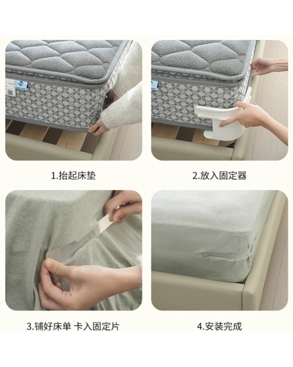 4 تا گیره محکم که ملحفه رو مثل کمربند نگه میدارن — دیگه جمع شدنش تمومه!