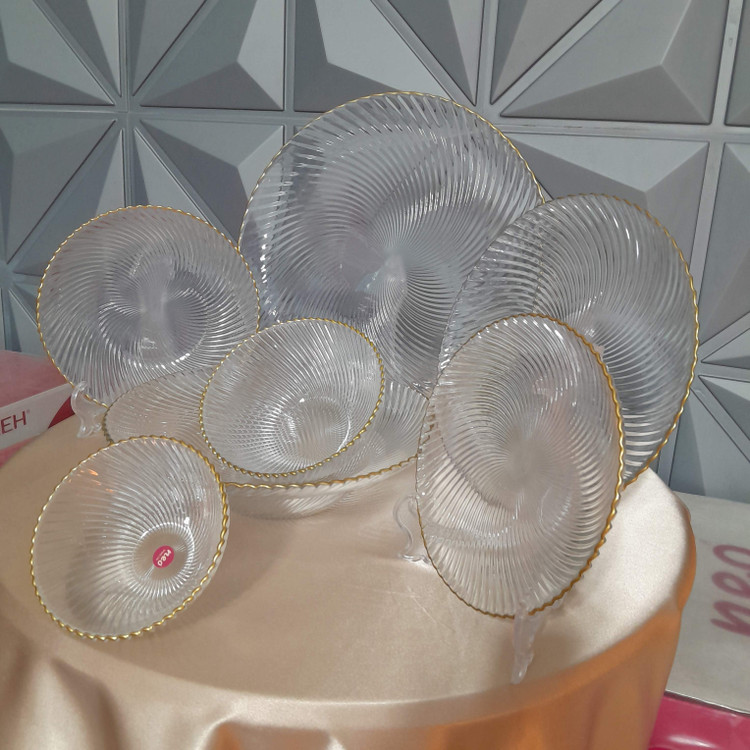 ۶عدد پیش دست، ۶ عدد پیاله ماست، ۶ عدد پلوخوری ، ۶عدد خورشت خوری، ۶ عدد کاسه سوپ خوری، یک عدد کاسه بزرگ، دو عدد دیس
