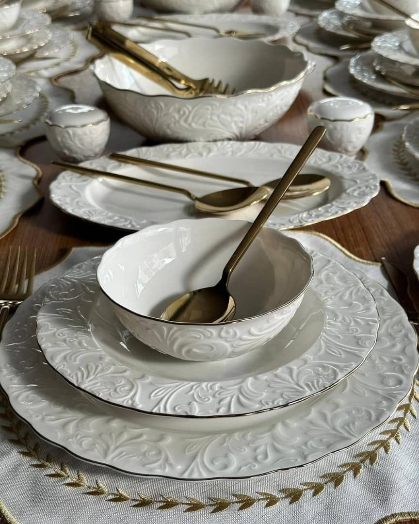 سرویس غذا خوری ۶ نفره ۲۶ پارچه گل برجسته برند İpek