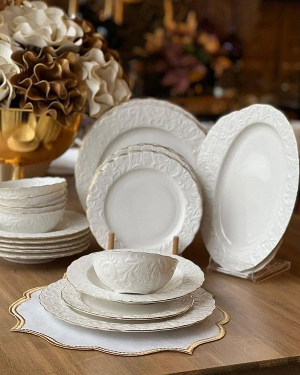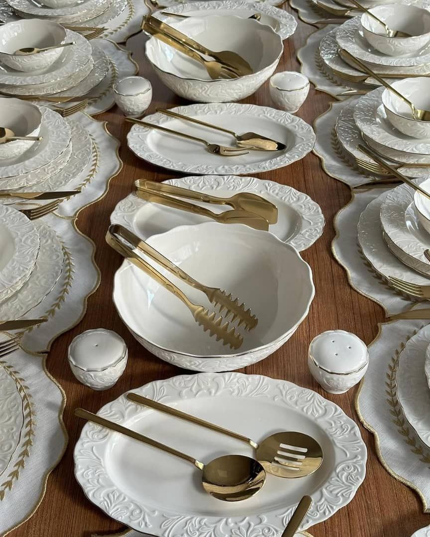 سرویس غذا خوری ۱۲ نفره ۵۵ پارچه گل برجسته برند İpek