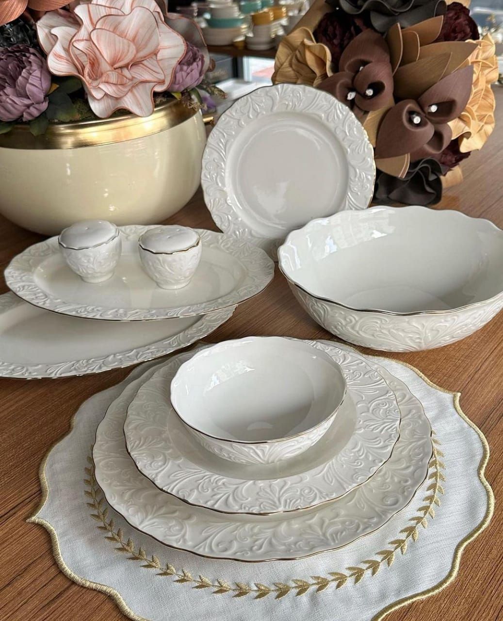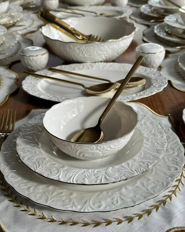 سرویس غذا خوری ۱۲ نفره ۸۳ پارچه گل برجسته برند İpek