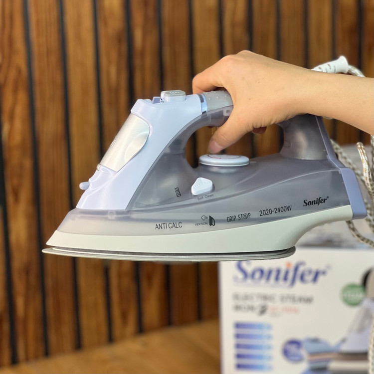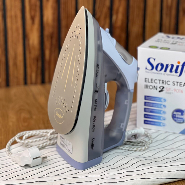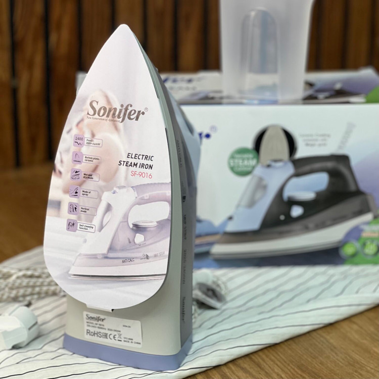 اتو بخارسونيفر SF-9016 : كابل برق مستحكم و بادوام و قابل جرخش، كفى ضدخش دسته اركونوميك، رسوب زدايى داخلى Slider، خاموش كن خودكار، خودتميز كن خودكار ،دكمه تنظيم دما