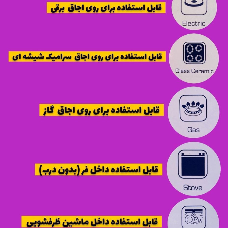 مناسب برای: آشپزی با اجاق گاز ، اجاق برقی ، اجاق سرامیکی