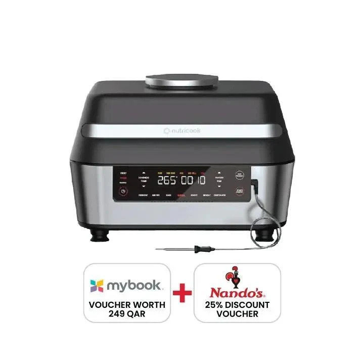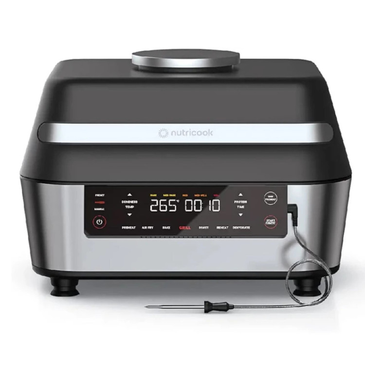 مجهز به دماسنج هوشمند با امکان تنظیم دمای پخت ایده آل برای 5 نوع پروتئین گوشت گاو، بره، مرغ، ماهی و گوشت گیاهی
