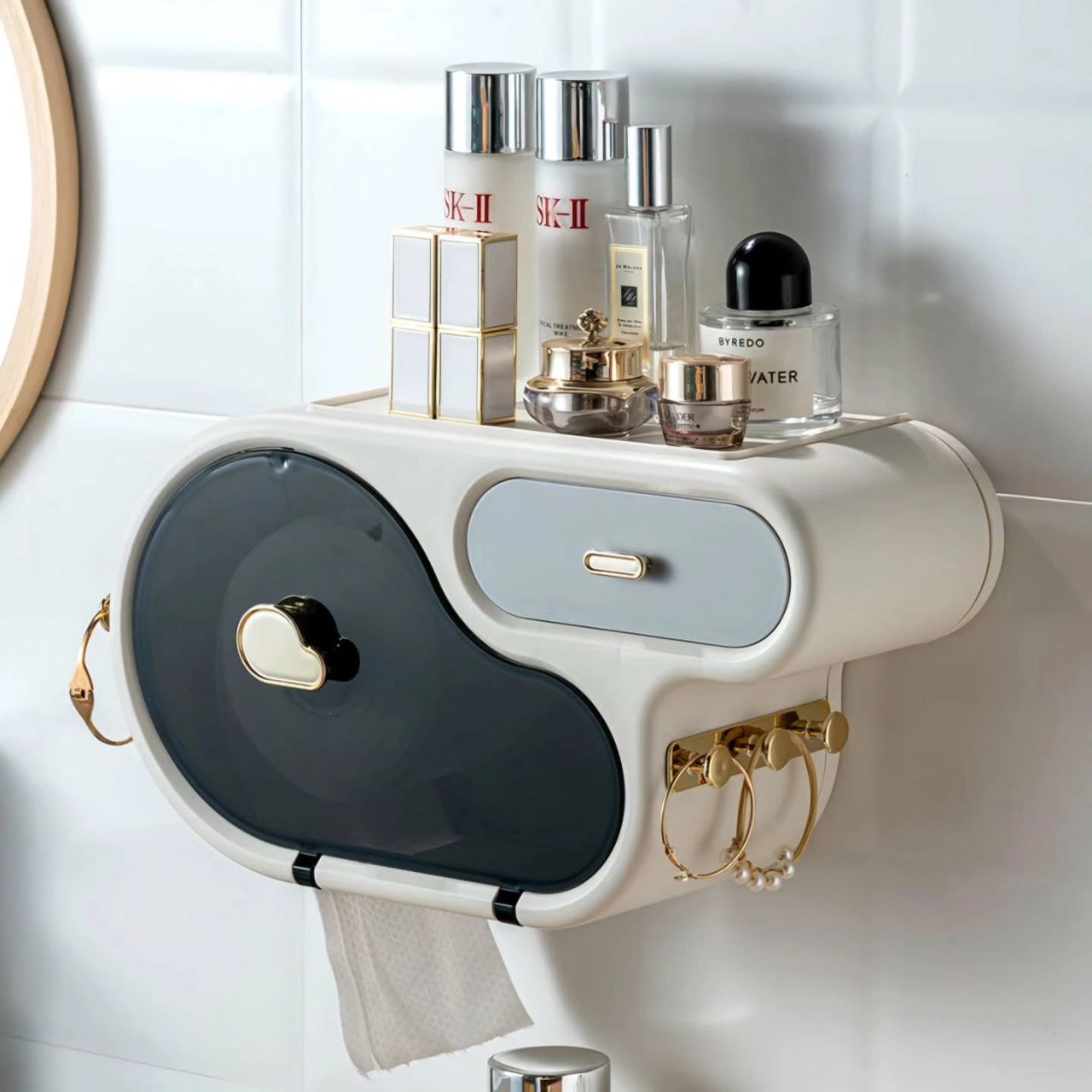 دارای : پایه ی دستمال رولی متحرک مناسب دستمال رولی و جعبه ای