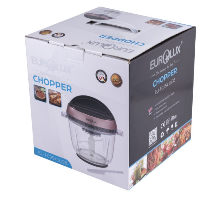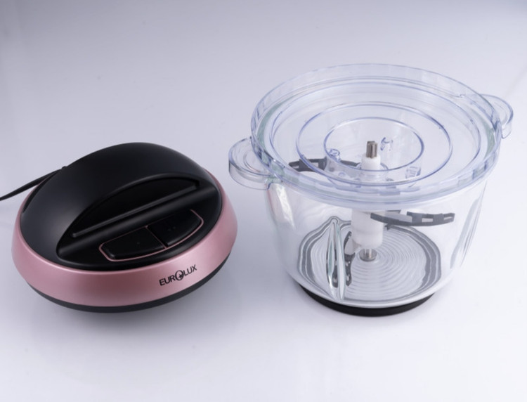 خردکن EU-FC2541GB همچنین دارای دوسرعت کند و تند میباشد که مناسب با مواد داخل خردکن، قابل استفاده است. گفتنی است که جنس ظرف این خردکن از شیشه و ظرفیت آن 2ونیم لیتر است. همچنین بهجز بدنهی اصلی، تمامی اجزای این محصول قابل شستشو است.