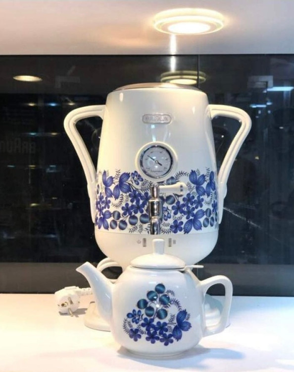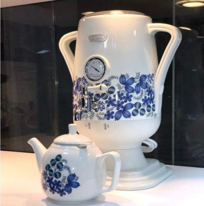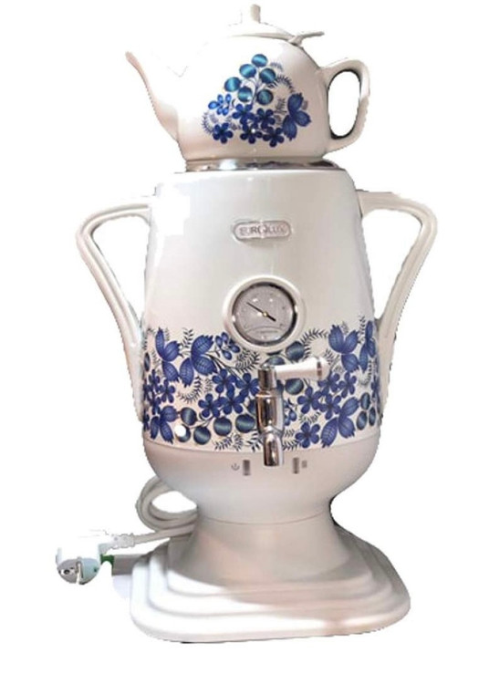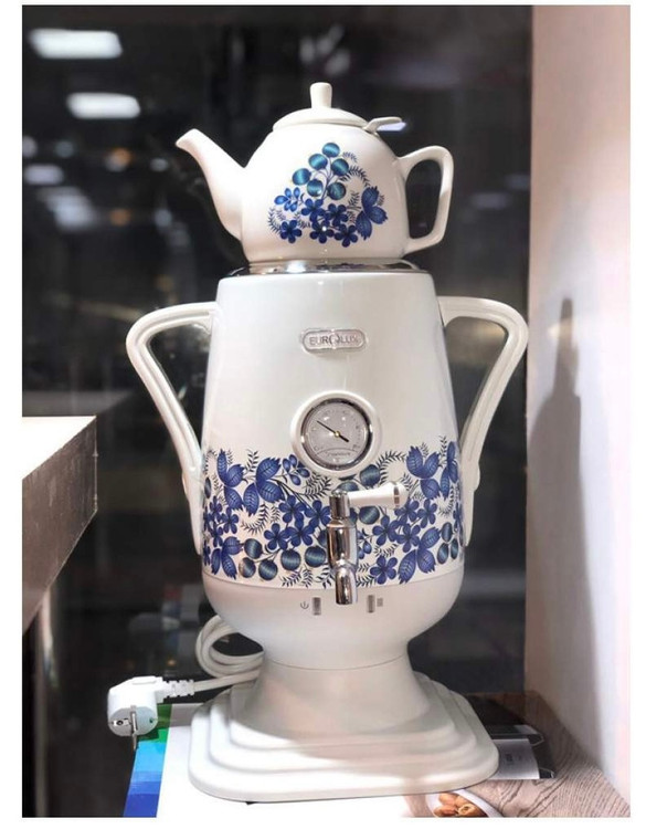 سماور برقی یورولوکس نشانگرهای جوش و ذخیره گرم دارد و بشکه ی مخصوص فلزی با قوری ظریف و شکیل برای آن طراحی شده است.