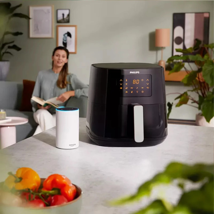 این دستگاه هواپز 9280 فیلیپس مجهز به یک تکنولوژی فوق العاده ایده آل برای آسودگی خاطر شما میباشد، که بدون نیاز به سر زدن به دستگاه شما را از مرحله پخت مواد غذایی مطلع میکند. با اتصال دستگاه خود به WIFI زمانی که روی مبل خود در منزل نشستهاید پیام آماده شدن غذای را دریافت کنید تا احتیاجی به نظارت مداوم به غذا نداشته باشید. بهوسیله فعال شدن کنترل صوتی قابلیت سازگاری و انطباق با AMAZON ALEXA وجود دارد و میتوانید از این قابلیت استفاده کنید.