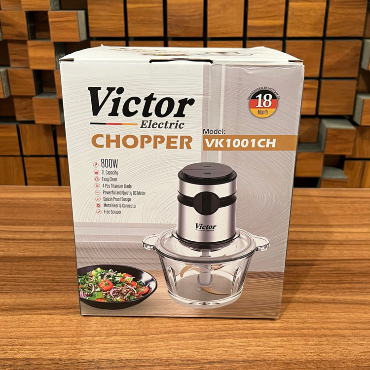ویکتور با عرضه محصولاتی که قدرت عملکرد مطلوبی دارند و قیمت گذاری ایدهآل، تبدیل به یکی از برندهای پرفروش در بازار خردکن شده است و VK1001CH به عنوان یکی از پرچمداران این برند معتبر شناخته میشود که دارای ظرفی 2 لیتری از جنس شیشه با طراحی کاملا شفاف است. خردکن ویکتور 1001 دارای قدرت عملکرد 800 وات است که در دسته دستگاههای قدرتمند خانگی قرار میگیرد و مجهز به 4 تیغه تیتانیومی فوقالعاده برنده و مستحکم است که هر ماده غذایی را با سرعت بسیار زیاد خرد میکنند. میزان سرعت این دستگاه خوشساخت در 2 حالت (متناسب با ماده در حال خرد شدن) قابل تنظیم است و از عملکرد پالس جهت به کارگیری بالاترین قدرت عملکرد برای خردکن مواد بسیار سفت نیز بهره میبرد.
