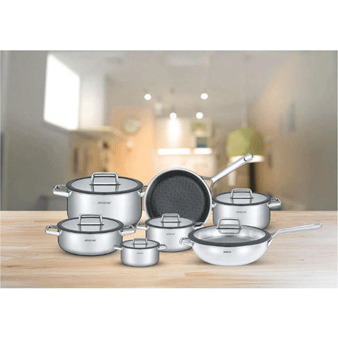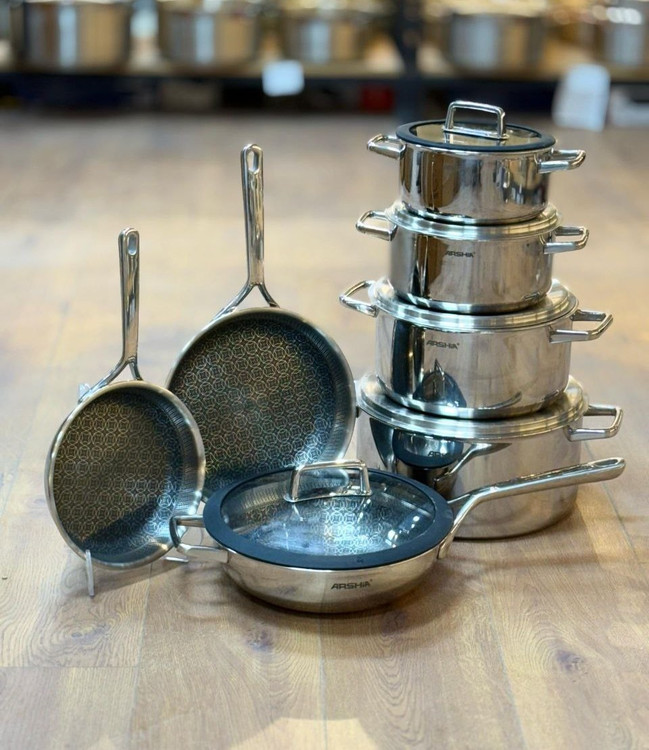 سرویس قابلمه استیل کف لیزری عرشیا مدل SS050-3343 با طراحی منحصر به فرد و ویژگیهای برجستهای که دارد، یک انتخاب عالی برای آشپزخانههای مدرن و حرفهای است.
