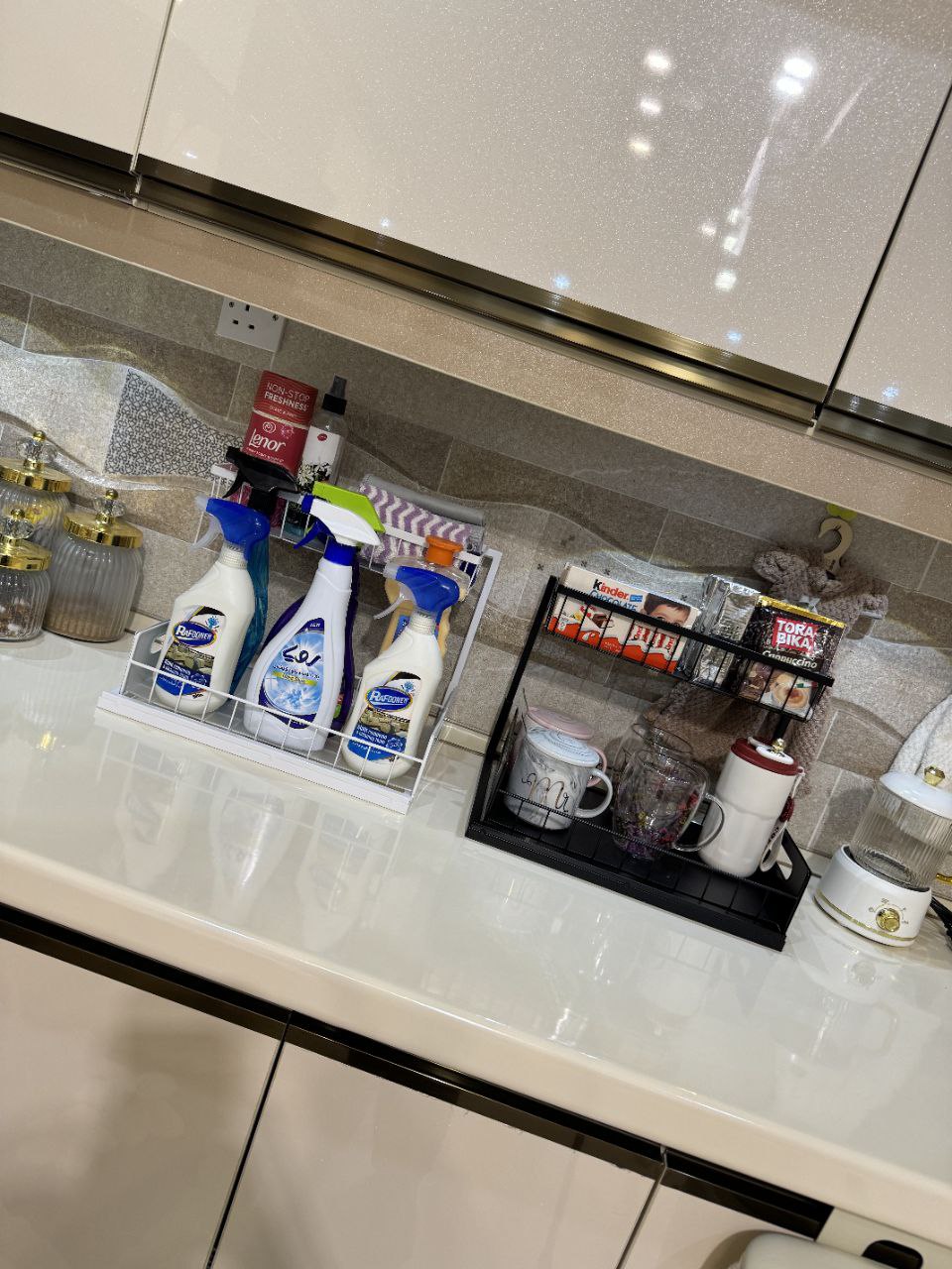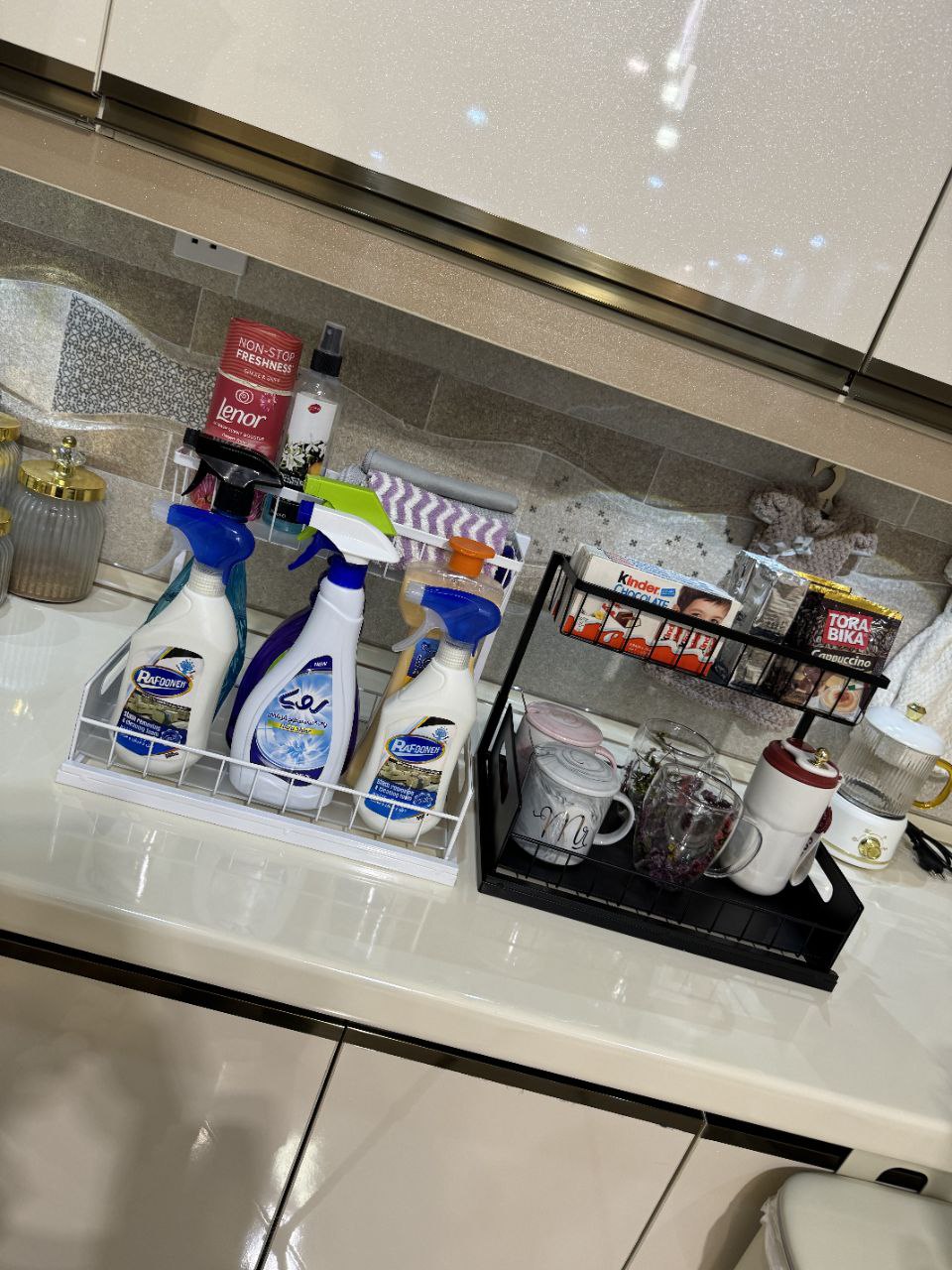 🧼سینی ها قابل جابجایی و شست و شو هستند و قفسه های کشویی فضای کابینت بیشتری را اضافه می کند