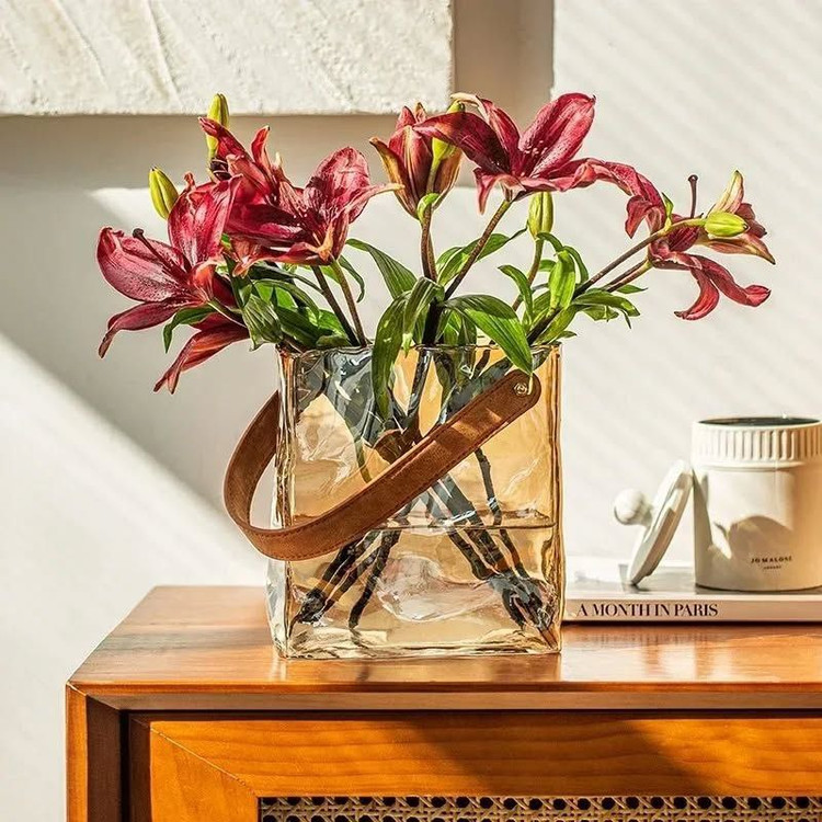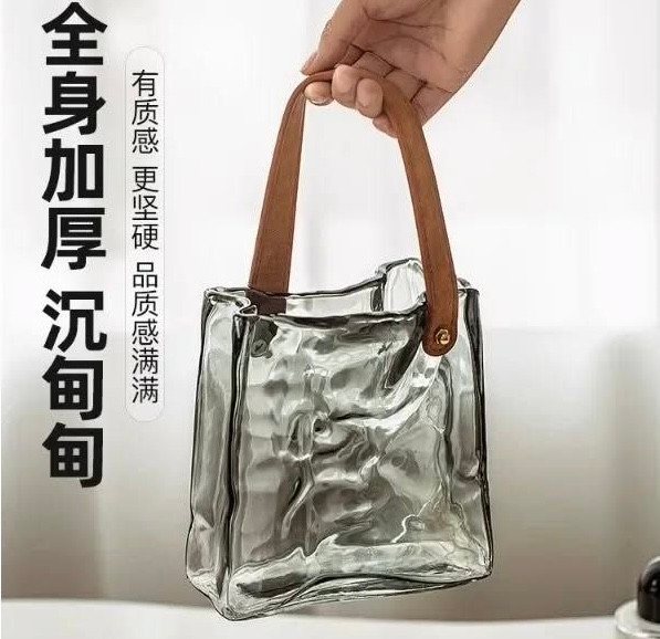 گلدان پیرکس دسته چرم