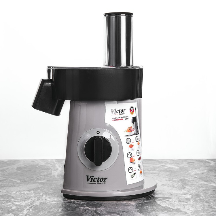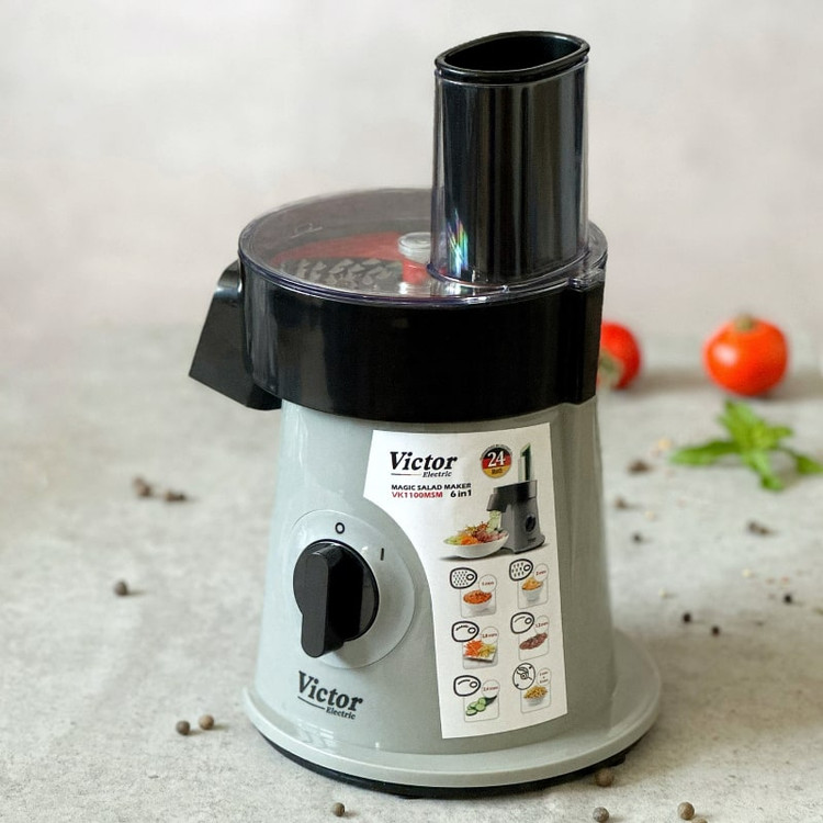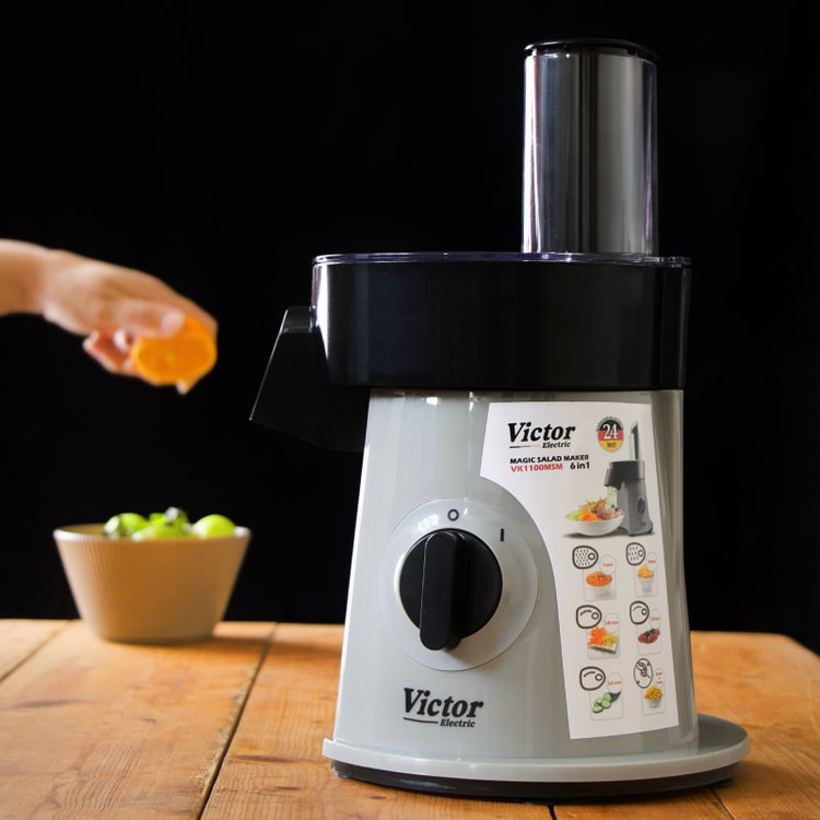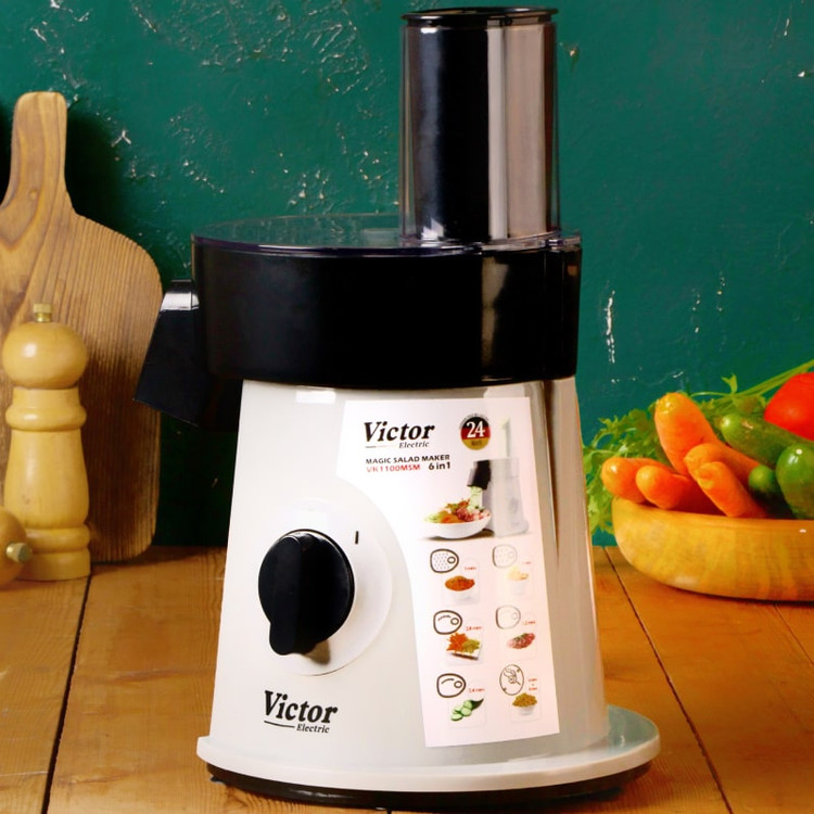 سالادساز ویکتور مدل VK1100SM دیگر نیازی به صرف زمان زیاد برای برش و خرد کردن مواد غذایی ندارید. این دستگاه با ۶ دیسک استیل ضدزنگ و عملکرد حرفهای، آماده است تا سبزیجات، پنیر، سیبزمینی و بسیاری مواد دیگر را در چند ثانیه، با دقت و کیفیت بالا برای شما آماده کند.