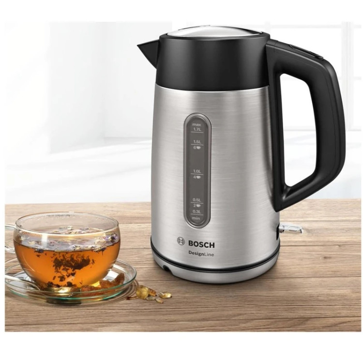 دستگاه بادوام با طراحی شیک و خاص کمپانی بوش میباشد. این محصول با توان 2400W و المنت گرمایی بسیار باکیفیت در قسمت زیرین کتری، قابلیت جوشاندن آب در کسری از زمان را دارد.