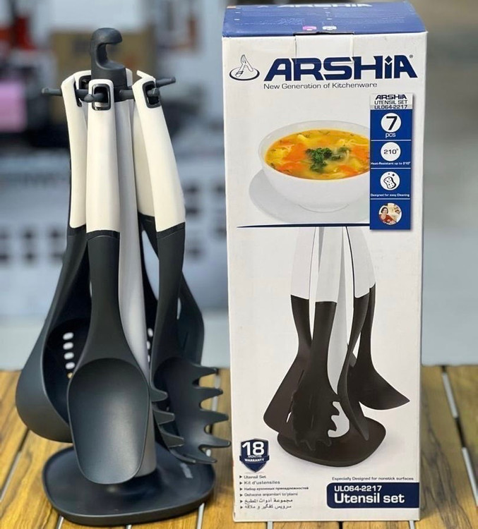 این ست شامل کفگیر پذیرایی،کفگیر سرخ کن،کفگیر سرو ماکارونی ،کفگیر هاشور دار و ملاقه میباشد